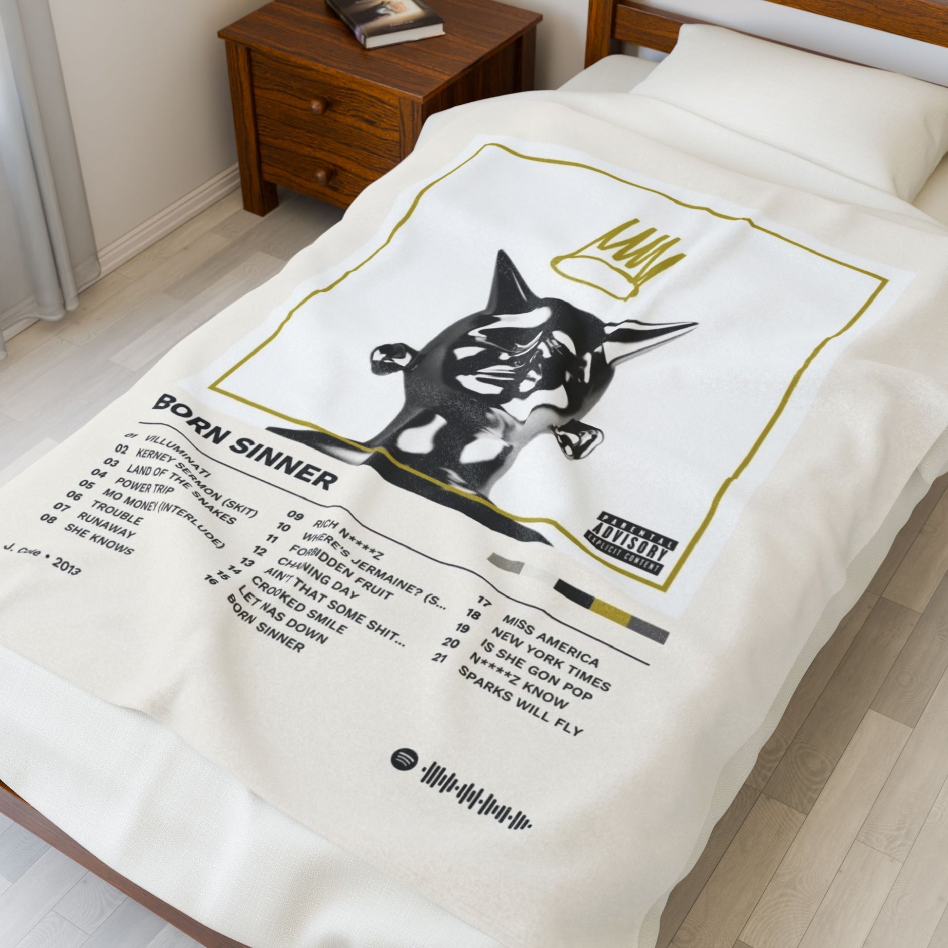 Create a cozy and warm atmosphere at home with this plush velveteen blanket. It is soft to touch and perfect for any home. Premium professional printing made to match your premium music taste. Available in three sizes: 30x40", 50x60", 60x80".